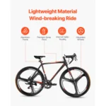 - Exceptional Braking System: This racing bike features a reliable disc braking system that delivers quick response and precise control during rides. It ensures secure downhill and wet condition cycling, giving you confidence and control on the road